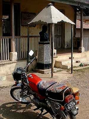 Gandhi’s bust in front of the library in Dharam – Photo Jan Öberg, © TFF 2001