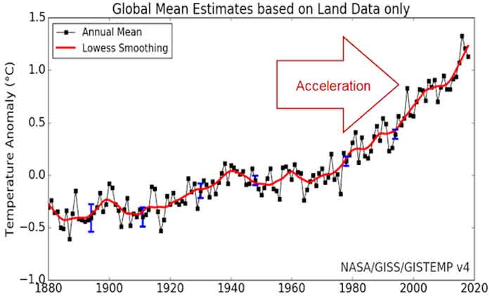 Figure 1. Global mean temperature estimates for land areas (NASA).