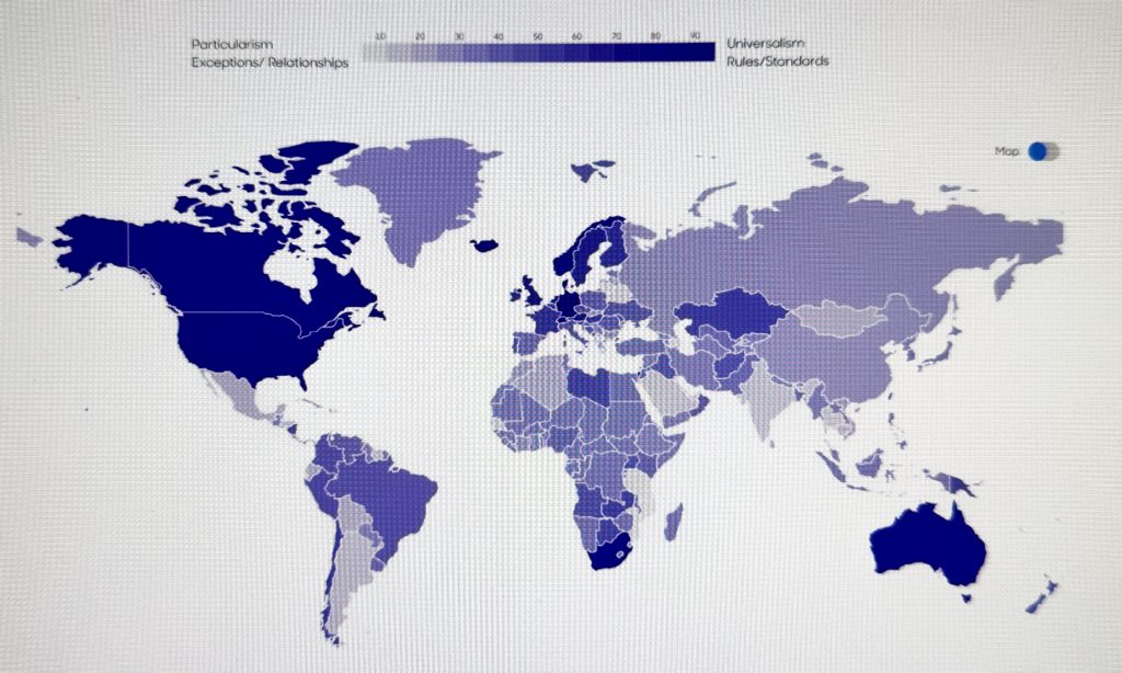 The U-P score is not determined by this single dilemma. The following picture shows the global projection of this dimension. It is a screenshot of the current Trompenaars & Hampden-Turner homepage.
