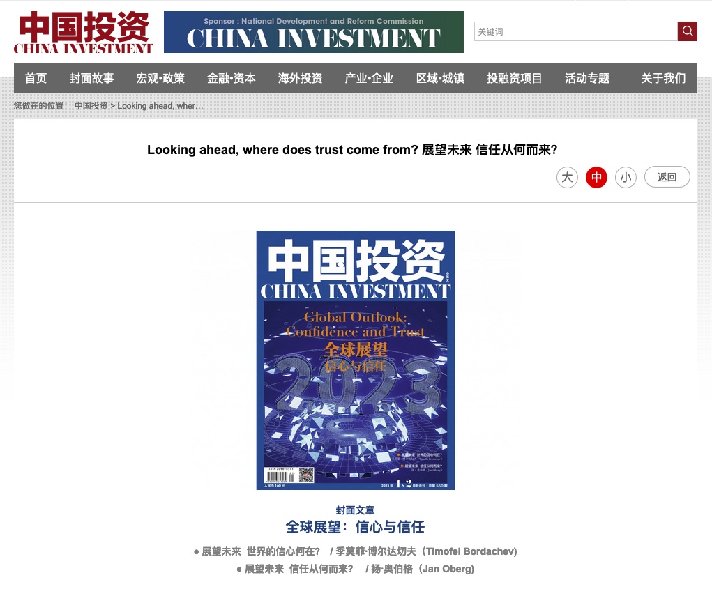 This rather long text was written on the invitation of the distinguished “China Investment” magazine, which is sponsored by China’s National Development and Reform Commission.
