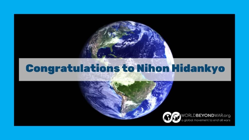 Congratulations are in order for Nihon Hidankyo, the Japan Confederation of A- and H-Bomb Sufferers Organizations. The Nobel Peace Prize has for the first time in at least six years gone to a group of people who work to reduce warmaking, people who in fact seek to abolish nuclear weapons. Nihon Hidankyo has relentlessly done the work of educating the world, thanklessly, for many years. This prize should be celebrated far and wide.