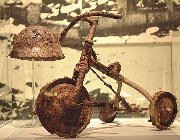 Tricycle and helmet found 1,500 m from hypocenter