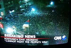 The Yugoslav non-violent revolution is the final argument against the ignorant and popular thesis that Yugoslavia, due to its history and ‘Communism’ could not have and did not have a civil society. I believe that it was civil society in a broad sense that manifested itself on October 5 and 6 – with all its networks, solidarity and spontaneity, with its unconstituted leadership and tremendous energy. In full it displayed its anti-authoritarian and democratic character, its non-governmental-ness – also in the sense of being “non-governable.” It was people’s power, change by peaceful means – although, sadly, there were incidences of violence against human being such as the ugly beating up of the director of the radio and television station, RTS, many wounded and at least one young person killed.