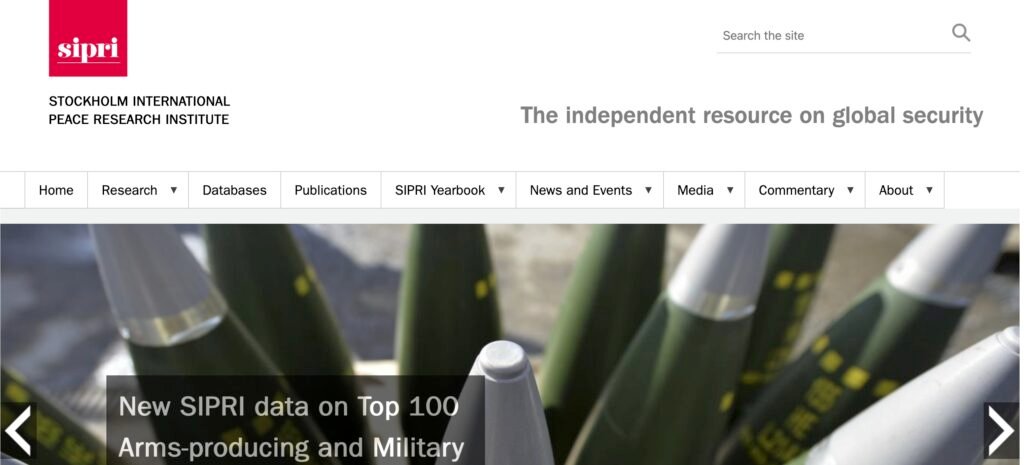 SIPRI now (on top of all its pages) calls itself “The independent resource on global security”—note that SIPRI decades ago was proud of associating itself with the word “peace;” then it became an independent resource on security and peace, and now “peace” has been dropped.