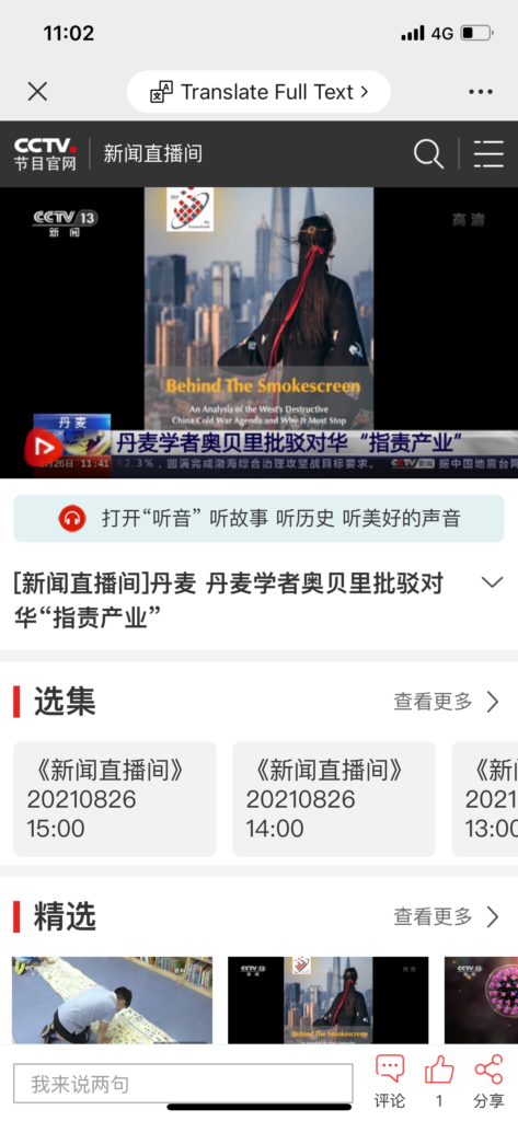 TFF's report on the West's China Cold War Agenda, CCWA, reaches millions on China's national television