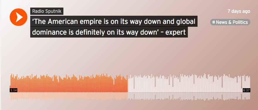 A conversation with Sputnik Radio on the ongoing and increasing confrontational policies and media demonization of Russia by West – seen here through the lenses of imperial decline.