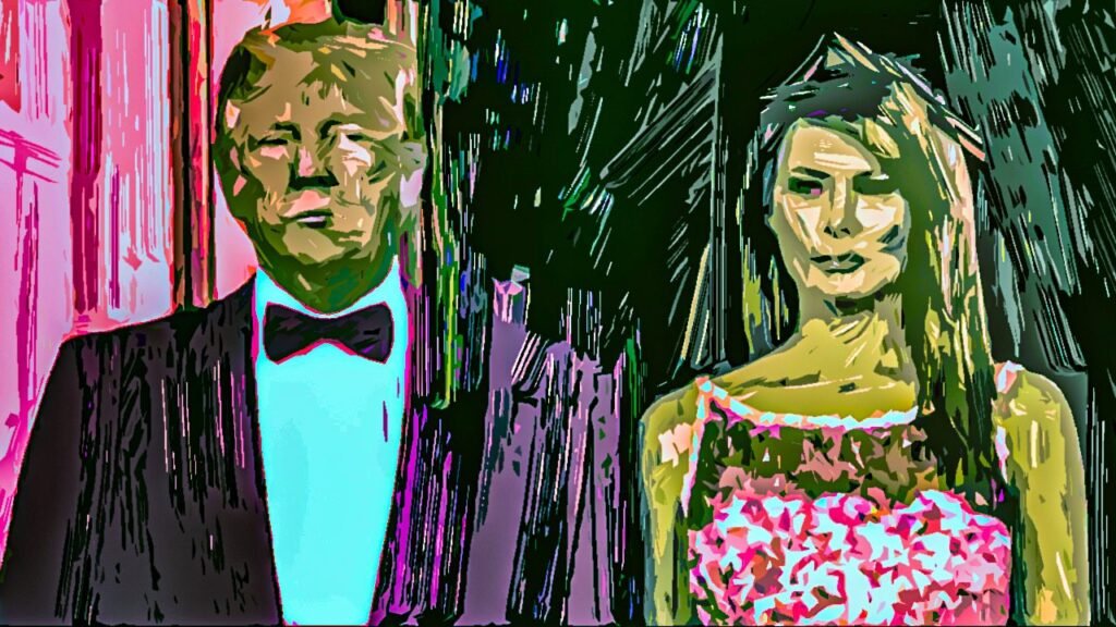 Billedet af det amerikanske preæsidentpar ovenfor er en adaptation, et fotomaleri, baseret på et pressebilede. © Jan Øberg 2019